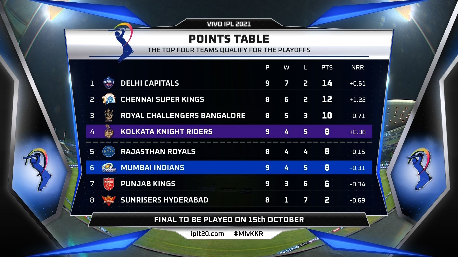 Points Table At The Halfway Of The Ipl Season 2020 Vs 2021 R Cricket